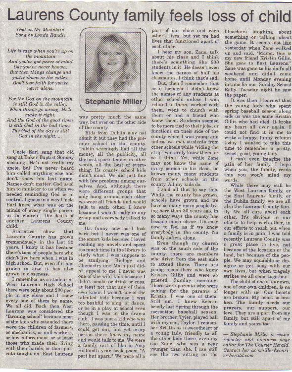 Articles published in our local paper
